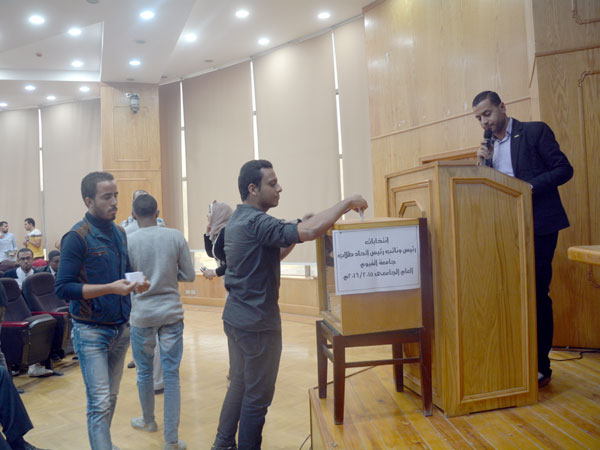 تحت رعاية الأستاذ الدكتور/ خالد إسماعيل حمزة رئيس الجامعة واشراف الأستاذ الدكتور/ محمد عبد الوهاب نائب رئيس الجامعة لشئون التعليم والطلاب نظمت الإدارة العامة لرعاية الشباب انتخابات رئيس ونائب رئيس اتحاد طلاب الجامعة وذلك يوم الثلاثاء الموافق 24/11/2015 بقاعة المؤتمرات بالمكتبة المركزية بالجامعة.