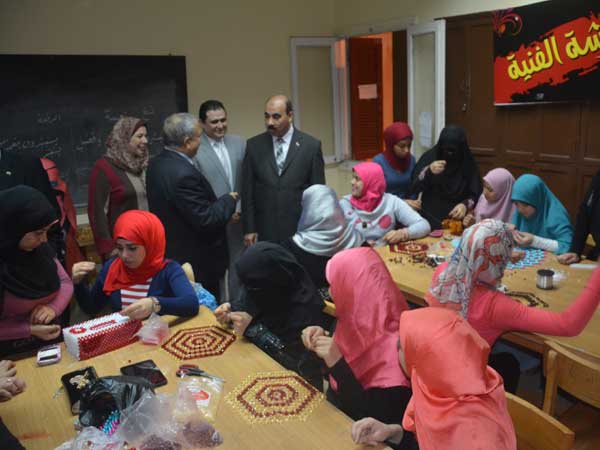 كما تفقد رئيس الجامعة والسادة الحضور العديد من الأنشطة التى تقام بالمدن الجامعية منها دورة الفنون والخط العربى والتى حاضر فيها أساتذة من مدرسة الخطوط العربية بالفيوم وايضا الورش الفنية من لوحات فنية وأعمال الخرز وأشغال التريكو من أعمال الطالبات بالاضافة الى تنظيم دورات أخرى بالمدن الجامعية منها دورة تلاوة وتجويد القرآن الكريم ودورة الاسعافات الأولية بالتعاون مع كلية التمريض وحملات للتبرع بالدم بالتعاون مع مستشفيات الجامعة.