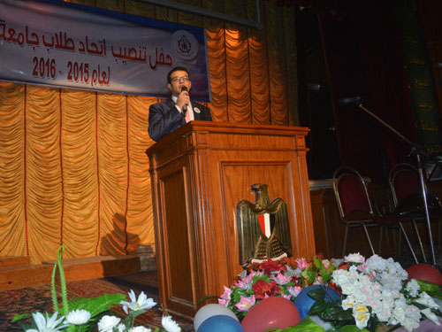 شهد الأستاذ الدكتور/ خالد اسماعيل حمزة رئيس الجامعة والأستاذ الدكتور/ محمد عبد الوهاب نائب رئيس الجامعة لشئون التعليم والطلاب حفل تنصيب اتحاد طلاب الجامعة اليوم الثلاثاء الموافق 2015/12/22 بقاعة أ.د. سعيد سليمان للإحتفالات.