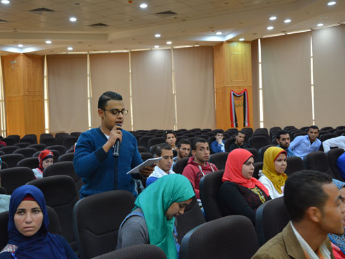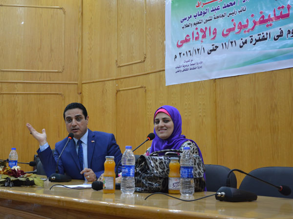 تحت رعاية الاستاذ الدكتور/ خالد اسماعيل حمزة رئيس الجامعة واشراف الاستاذ الدكتور/ محمد عبد الوهاب نائب رئيس الجامعة لشئون التعليم والطلاب نظمت الادارة العامة لرعاية الشباب ورشة عمل "لاعداد المراسل التليفزيوني والاذاعي "علي مستوي كليات الجامعة ،خلال الفترة من 2016/11/21 وحتي 2016/12/1 ،بحضور الدكتور/ وائل طوبار مسئول التواصل الطلابي والاعلامي/ عبد الحكيم اللواج والاعلامية/ ايناس عبد العزيز.