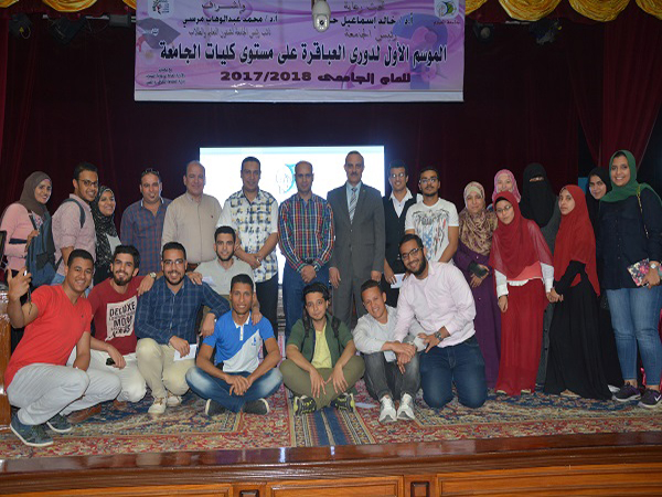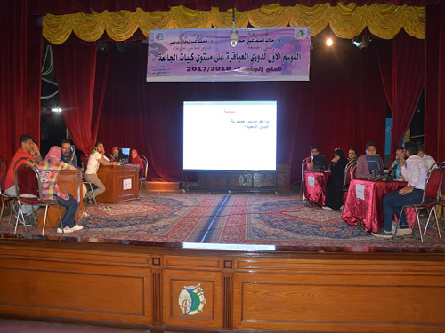 تحت رعاية الأستاذ الدكتور / خالد اسماعيل حمزة رئيس جامعة الفيوم وإشراف الأستاذ الدكتور / محمد عبد الوهاب مرسى نائب رئيس الجامعة لشئون التعليم والطلاب نظمت إدارة النشاط الثقافى والفنى بالادارة العامة لرعاية الشباب دورى العباقرة على مستوى كليات جامعة الفيوم للعام الجامعى 2017 – 2018 وذلك خلال الفترة من 15 / 4 حتى 18 / 4 / 2018 , حيث شارك فى المسابقة 16 كلية يمثل كلا ًمنها 4 طلاب وتمت المسابقة على مرحلتين حيث تم تصعيد 10 كليات فى المرحلة الأولى وصعدت 4 كليات فى المرحلة النهائية وشملت كليات الزراعة , العلوم , الطب البشرى , الآثار .