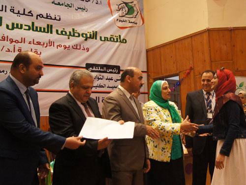 حضر الملتقى الأستاذ الدكتور/ محمد عبد الوهاب نائب رئيس الجامعة لشئون التعليم والطلاب والأستاذ الدكتور/ أشرف عبد الحفيظ رحيل نائب رئيس الجامعة لشئون خدمة المجتمع وتنمية البيئة والأستاذة الدكتورة/ منى عبد التواب الخشاب عميد كلية الزراعة ( رئيس الملتقى ) والأستاذ الدكتور/ رمضان عبد العزيز مدنى وكيل الكلية لشئون خدمة المجتمع وتنمية البيئة (مقرر الملتقى ) والدكتور/ وليد الشيمى مدير وحدة الخريجين بالجامعة والدكتور/ عاطف أحمد عبد المجيد مدير وحدة متابعة الخريجين بالكلية ( منسق الملتقى ) وعدد من مديرى وممثلى الشركات الراعية وهى : (أجروميك – سامتريد – أميسال – الوادى ) .