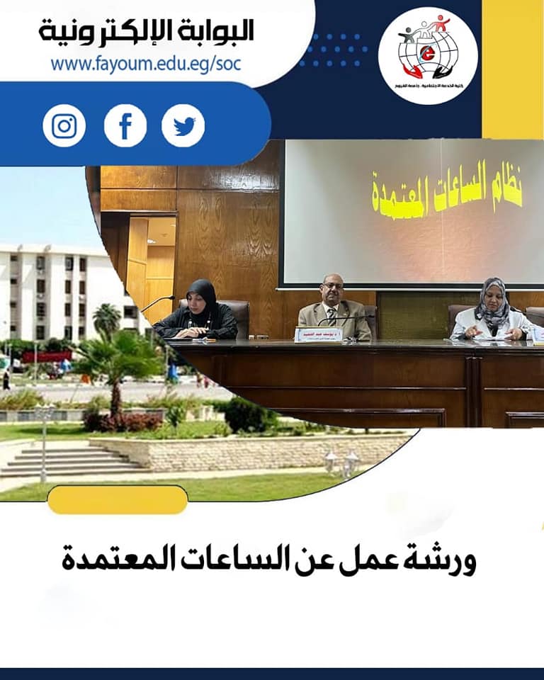 Under the auspices of Prof. Yasser MagdyHatata, President of Fayoum University, Prof. Mohamed Farouk Al Khabiri, Vice President for Education and Student Affairs, Prof. Ahmed Hosni Ibrahim, Dean of the Faculty of Social Work, and Prof. Youssef Mohamed Abdel Hamid, Vice Dean for Education and Student Affairs, the Faculty of Social Work organized a workshop in cooperation with the Faculty Vice Deanship for Community Service and Environmental Development, prepared by Prof. Hanaa Abdel Tawab and Prof. Abeer Hassan.