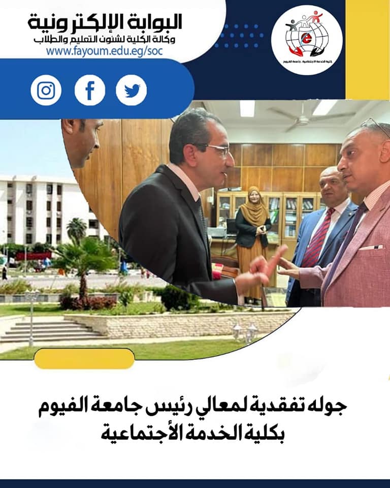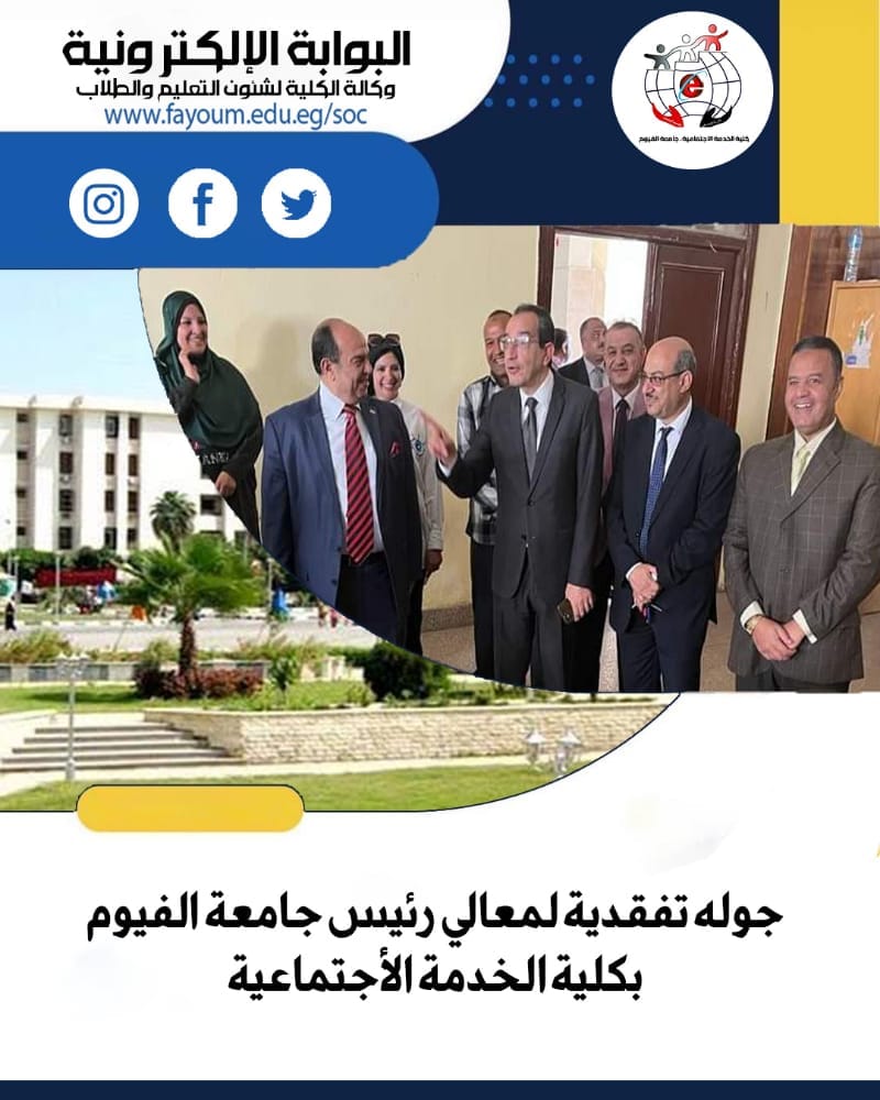 During his tour, the university president inspected some halls and their suitability to achieve the appropriate educational climate and expressed the efficiency and effectiveness of the Faculty of Social Work, leadership and staff.