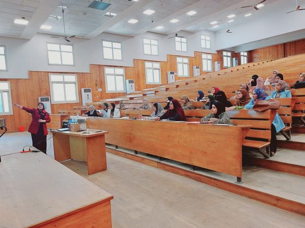 انه في يوم الاحد الموافق 25 / 5/ 2025 تم بفضل الله عقد ورشة العمل التطبيقية الخاصة بالعبء التدريسي لقسمى تمريض صحة الأم والرضيع وقسم تمريض الأطفال بتواجد متميز من السادة رؤساء القسمين والسادة أعضاء الاقسام الكرام وقد تم الانتهاء من ملىء استمارة العبء التدريسي بكفاءة