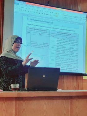 هدفت الورشة إلى توضيح وتيسير خطوات إعداد توصيف المقررات بما يتوافق مع المعايير المحددة من هيئة ضمان الجودة والاعتماد.