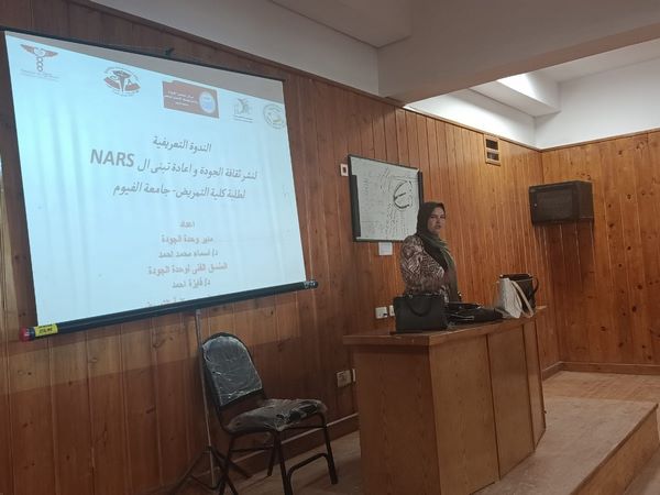 تحت إشراف سيادة عميد الكلية ورئيس مجلس إدارة الجودة ا.د شربات ثابت وبتنظيم من وحدة الجودة بالكلية قامت د. فايزة أحمد المنسق الفنى بوحدة الجودة ببدء الندوات التعريفية بالجودة وال NARS وذلك لطلاب الفرق الأربعة بالكلية وكانت البداية اليوم الأحد الموافق 28 سبتمبر للفرقة الثالثة وقدم الندوة د. آيات مسعد المنسق الداخلى لقسم صحة الأم وحديث الولادة بحضور مشرف من الطلاب وأعضاء القسم. كل الشكر السادة المنسقين