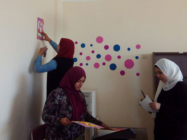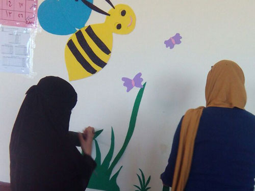 تجميل مدخل المدرسة و المكتبة و المسرح و الطرقات و السلم و حجرة مدير المدرسة