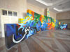 وهى عبارة عن مقتطفات من الحروف الأبجدية لمعظم لغات العالم ,وقد تم تنفيذها بأسلوب الفسيفساء "خامة الموزاييك " بمستويات تشكيلية مختلفة . وتبلغ مساحتها 35م2. المصمم والمنفذ للجدارية أ/ محمد محمود محمد ناصر المدرس المساعد بقسم التربية الفنية كلية التربية النوعية .