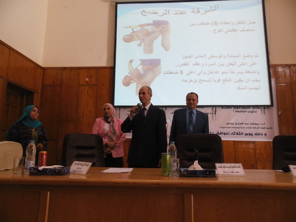 تم يوم الثلاثاء الموافق 24/11/2015 عقد ورشة عمل عن " الاسعافات الاولية" للساده العاملين بكلية الزراعة، وذلك بحضور السيد الأستاذ الدكتور / فريد عوض حيدر نائب رئيس الجامعة لشئون خدمة المجتمع و تنمية البيئة و أ.د/ مني عبدالتواب الخشاب عميد الكلية ، و أ.د/ رمضان عبد العزيز مدني و كيل الكلية لشئون خدمة المجتمع و تنمية البيئة و أ.د/نيفين على حسن السواح وكيل الكلية لشئون الدراسات العليا والبحوث ،و أ.د/ محمد عبد الهادي مشاحيت و كيل كلية التمريض لشئون خدمة المجتمع و تنمية البيئة و بدأت الورشة بكلمة أ.د/ رمضان مدني وأ.د/ مني عبدالتواب الخشاب ،و أ.د/فريد عوض حيدر ، و حاضر في هذة الورشة د/ فاطمة أبو الخير و د/ شربات ثابت ، و ذلك بقاعة أ.د/ سعد نصار للمؤتمرات ..