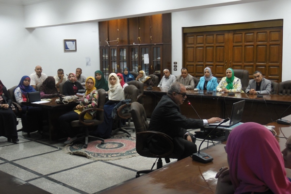 تم يوم الأثنين الموافق 24/10/2016 عقد ورشة عمل عن الخطة البحثية للكلية في الفترة من (2016-2021) بقاعة مجلس الكلية وذلك بحضور أ.د/ منى عبد التواب الخشاب عميد الكلية والسادة الوكلاء ولفيف من السادة أعضاء هيئة التدريس والهيئة المعاونة وطلاب الدراسات العليا والمجتمع المدنى. وتفضل أ.د/ محمد إبراهيم الخليلى- أستاذ أمراض النبات ونائب رئيس الجامعة السابق لشئون الدراسات العليا والبحوث بعرض تفاصيل الخطة والتى تم مناقشتها من قبل السادة الحضور وتفضل سيادته بالرد على كافة الملاحظات التى تم طرحها.