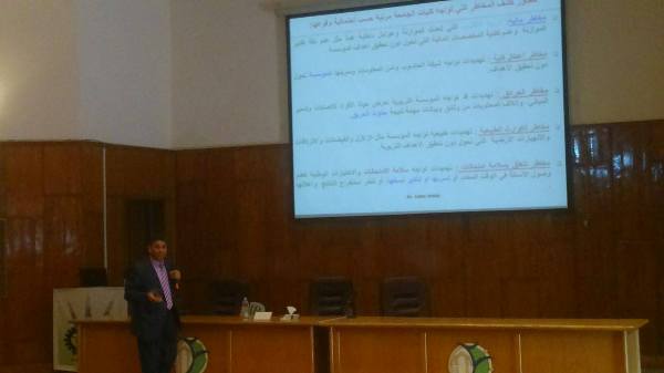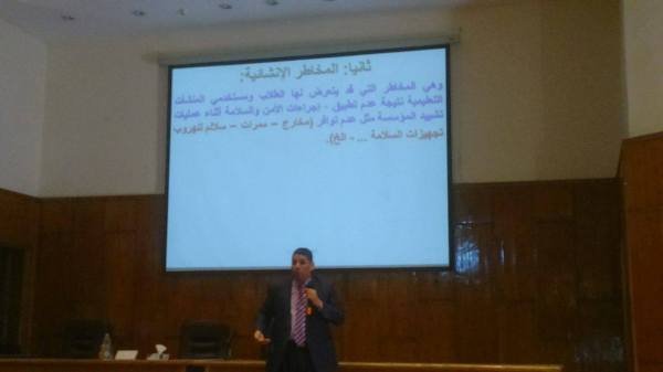 نظمت كلية الزراعة (وكالة شئون خدمة المجتمع وتنمية البيئة ) ندوة تحت عنوان ( السلامة والصحة المهنية) بالكلية وذلك اليوم الاحد الموافق 2/4/2017 للسادة العاملين بالكلية والسادة أعضاء هيئة التدريس والهيئة المعاونة بالكلية ، وذلك بحضور أ.د/ منى الخشاب عميد الكلية وأ.د. رمضان مدني وكيل الكلية لشئون خدمة المجتمع وتنمية البيئة.