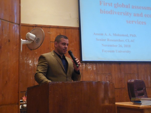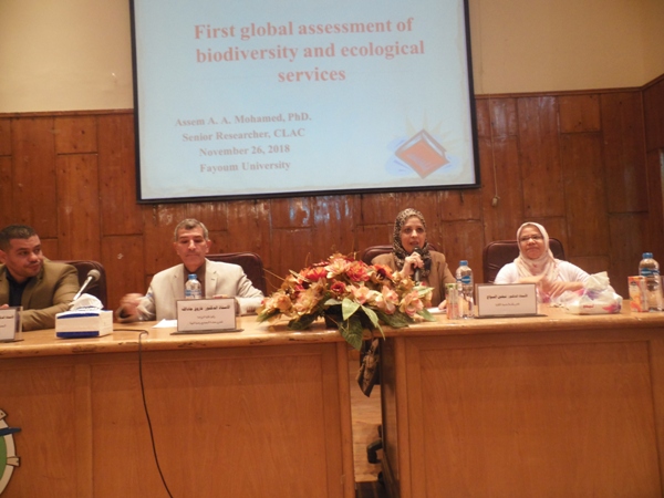تحت رعاية الاستاذ الدكتور / نيفين على حسن السواح القائم بأعمال عميد كلية الزراعة تم اليوم الاثنين الموافق 26/11/2018 إلقاء محاضرتين عن 1-( التقييم العالمي الخاص بالتنوع البيولوجي والخدمات الإيكولوجية ) 2- (تحليل سلسلة التأثيرات للتغيرات المناخية علي المحاصيل الرئيسية )