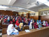 و توجه أ.د وليد الشيمي بحديثه الى الطلبة قائلا ان مركز متابعة الخريجين يقدم خدمات متنوعة لهم تشمل قيام المركز بالاشتراك مع الوحدات التابعة له لايجاد فرص عمل تناسب مؤهلات الخريجين ، كما يقوم المركز بتقديم التدريب و التأهيل للخريجين للحصول وظيفة ملائمة ، بالاضافة الى الحفاظ على دوام العلاقات الاجتماعية بين الخريج و زملاؤه سواء من دفعته أو الدفعات السابقة من خلال عمل يوم للخريجين .