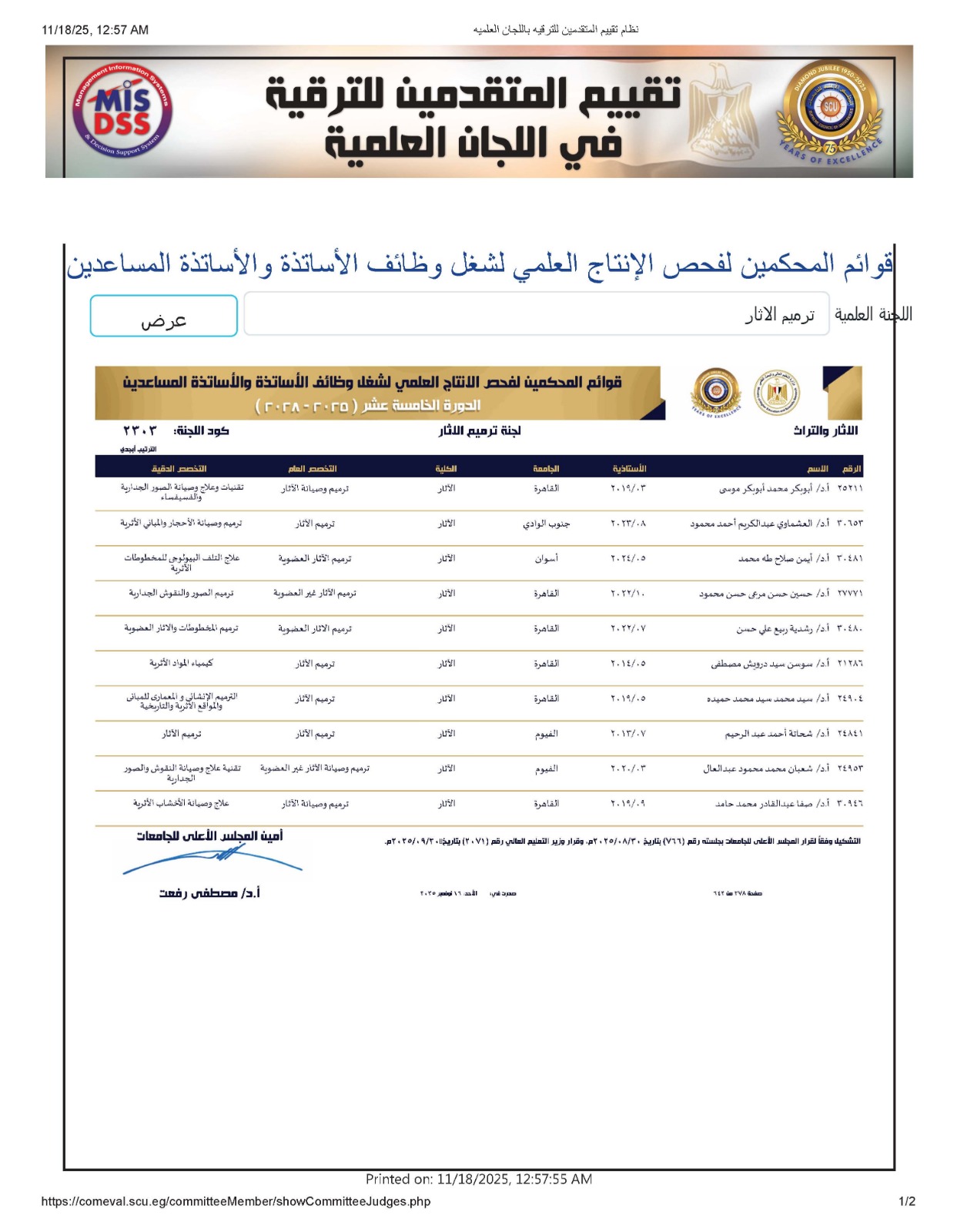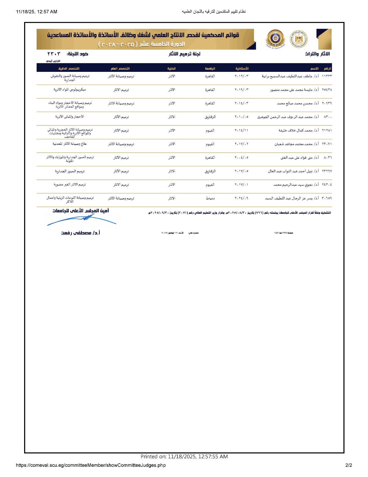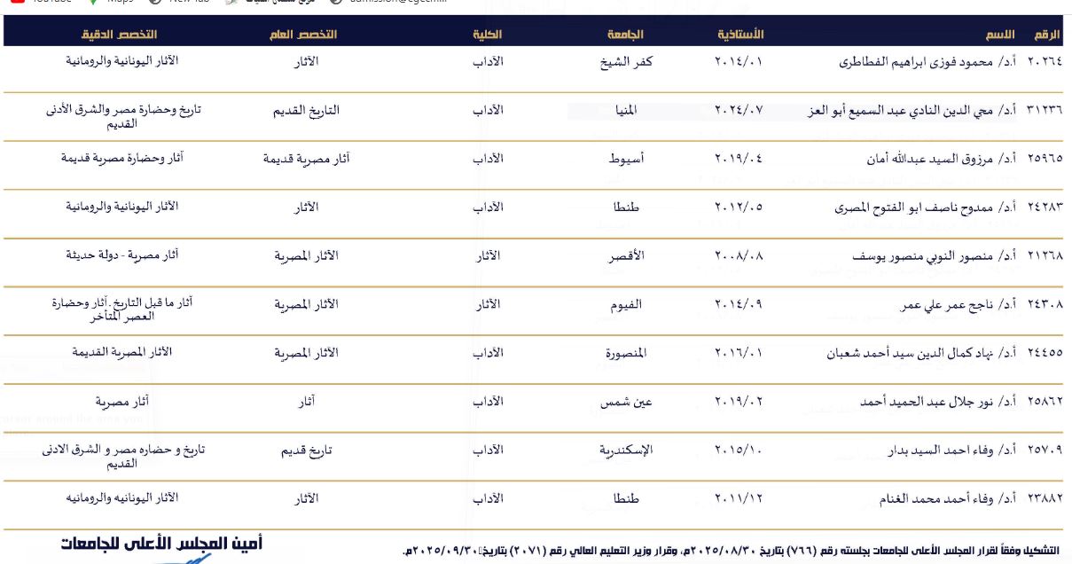 تتقدم أسرة الكلية بالتهنئة لأساتذة الكلية الذين تم اختيارهم ضمن قوائم المحكمين بلجان ترقية الأساتذة والاساتذة المساعدين بالمجلس الأعلي للجامعات.في دورتها الخامسة عشر (2025-2028)، وذلك كالتالي: