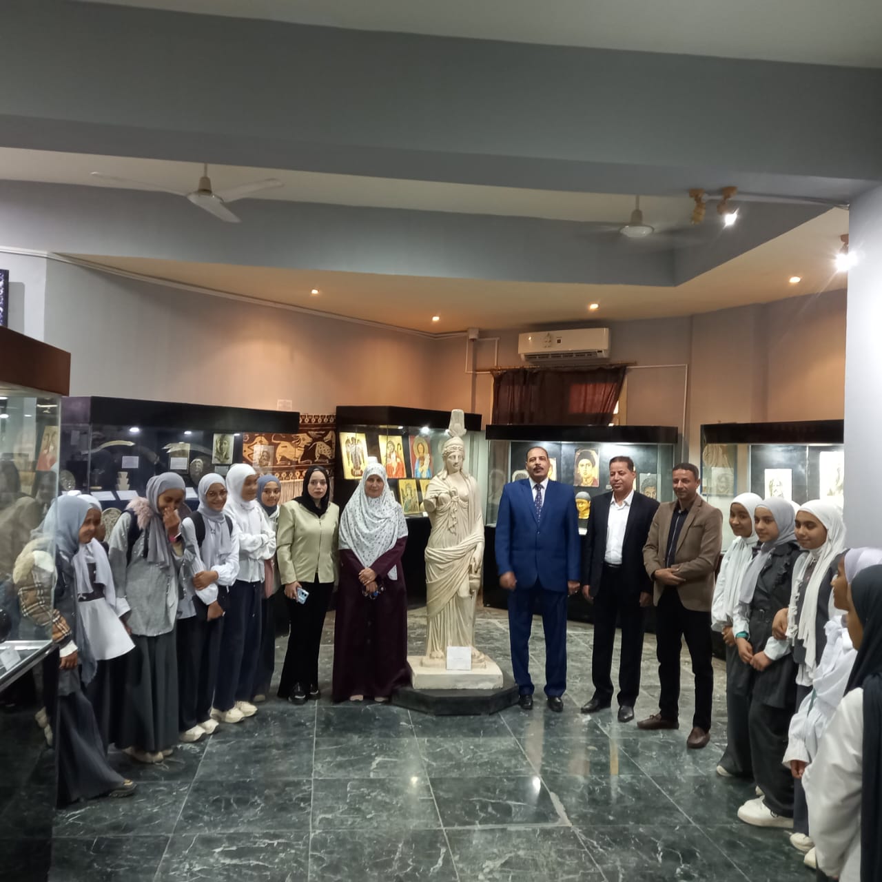 في إطار الجهود المتميزة لكلية الآثار جامعة الفيوم في نشر الوعي الأثري والثقافي بين أبناء محافظة الفيوم وبصفة خاصة طلاب المدارس والجامعات استقبل المتحف التعليمي بالكلية طالبات مدرسة ابو السعود للتعليم الأساسي التابعة لإدارة شرق الفيوم التعليمية وذلك اليوم الأربعاء الموافق 19/11/2025 بحضور الأستاذ الدكتور/ محمد كمال خلاف عميد كلية الاثار جامعة الفيوم والأستاذة الدكتورة/ أسماء إسماعيل وكيل الكلية لشئون خدمة المجتمع وتنمية البيئة والدكتور/ محمود عيد جوهر مدير المتحف التعليمي والأستاذ/ محمود حسين مدير الكلية والأستاذة/ مروة قاسم مدير العلاقات العامة بالكلية والأستاذ/ محمد عبد الحميد جنيدي مشرف الزيارة المدرسية