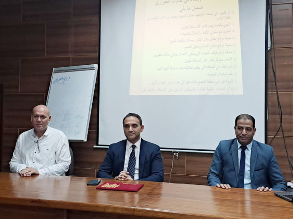 تم عقد ندوة عن اخلاء المبنى بمعهد حوض النيل بتاريخ 9/10/2023 وحاضر فى هذه الندوة ا.د/ طاهر حسن محمد، مدير مركز إدارة الأزمات والكوارث، وبحضور معالي الأستاذ الدكتور/ عاصم العيسوى نائب رئيس الجامعة لشؤون خدمة المجتمع وتنمية البيئة والمشرف على معهد حوض النيل، تحدث فيها عن الأزمات وأهميتها وكيفية التعامل معها وإدارتها بشكل جيد للحد من المخاطر الخاصة بها، كما تحدث على اطار عملي في كيفية اخلاء المبنى في حالة الطوارئ المختلفة في زمن محدد اهمها الحرائق كنموذج عملي وجاري الاستعداد للتنفيذ العملي لهذه التجربة.