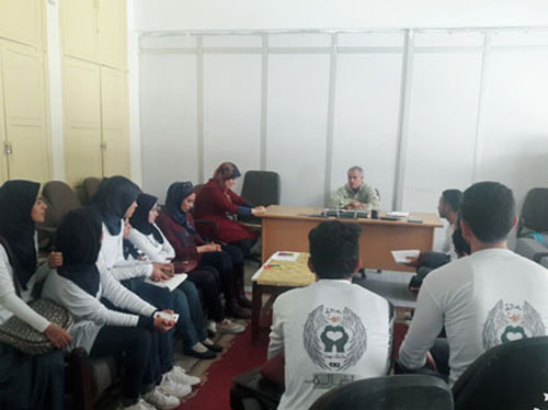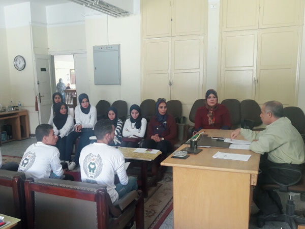 استقبل الأستاذ الدكتور/ ماهرفؤاد رمضان مديرمركز جامعة الفيوم لإدارة الأزمات والكوارث فريق إغاثة كلية التمريض ومديرى الفريق الدكتورة/ أسماء محمد والدكتورة/ مروة أعضاء هيئة تدريس بالمعهد الفني للتمريض لزيارة المركز بطلاب الفريق .