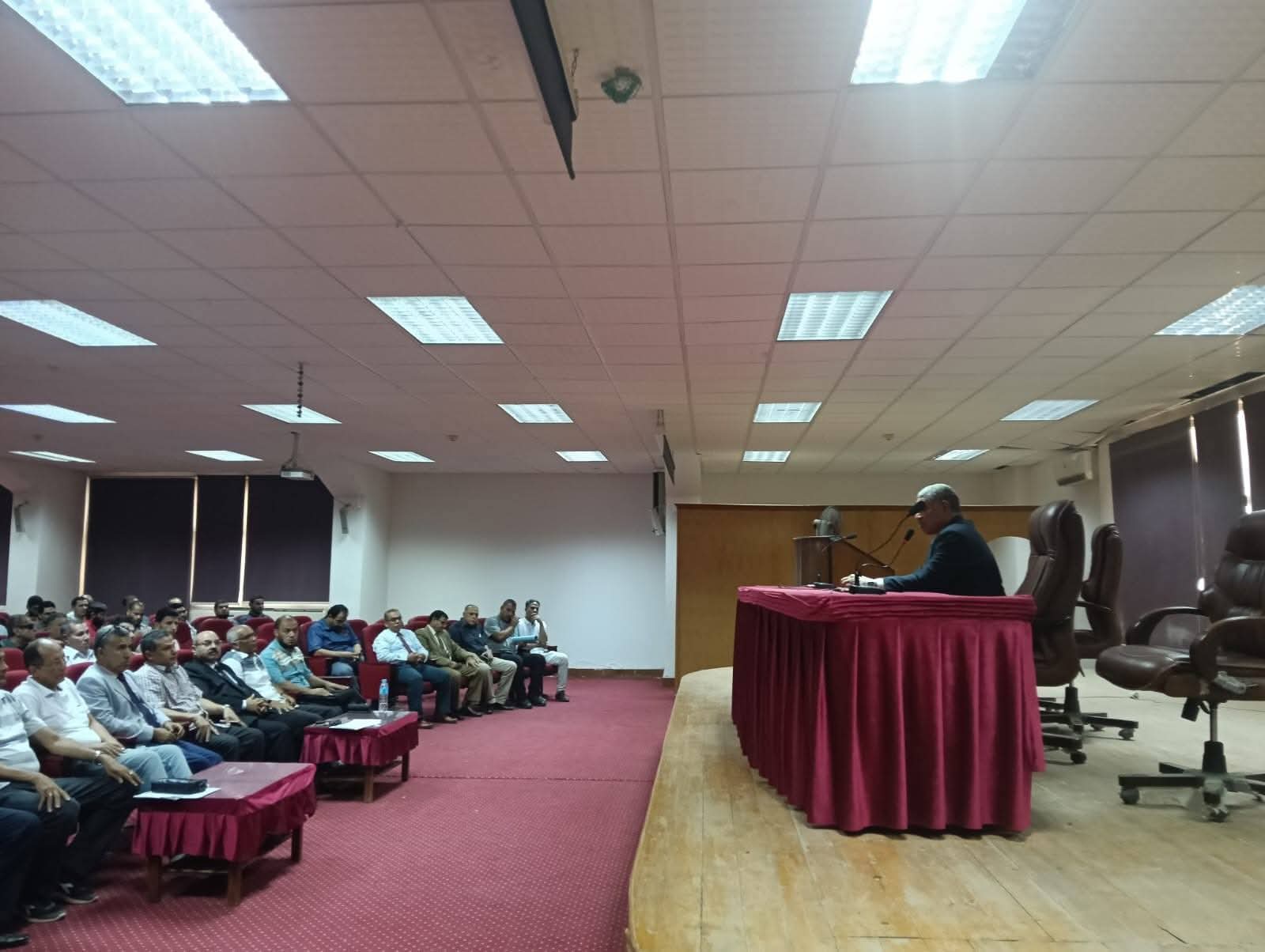تحت رعاية الأستاذ الدكتور/ ياسر مجدي حتاته؛ رئيس جامعة الفيوم، عقد الأستاذ الدكتور/ عرفه صبري حسن؛ نائب رئيس الجامعة لشئون الدراسات العليا والبحوث والعلاقات الثقافية، والمشرف على كلية دار العلوم اجتماعًا بمنتسبي الكلية من السادة أعضاء هيئة التدريس والهيئة المعاونة والإداريين، بالإضافة إلى فريق عمل الجودة وذلك اليوم الأحد الموافق 24 أغسطس ٢٠٢٥م ، وذلك في إطار متابعة سيادته المستمرة لاستكمال أوراق تقدم الكلية للاعتماد في ضوء القواعد المنظمة الجديدة للهيئة القومية لضمان جودة التعليم والاعتماد ٢٠٢٤-٢٠٢٥م، وأكّد سيادته أنَّه يسعى بكل ما أوتي من جهدٍ إلى تذليل جميع العقبات من أجل الانتهاء من هذا الملف المهم، كما أَشار سيادته إلى أن حصول الكلية على الجودة في هذه المرحلة هدفٌ رئيسٌ لا يمكن الحياد عنه أو التّواني عن تحقيقه.