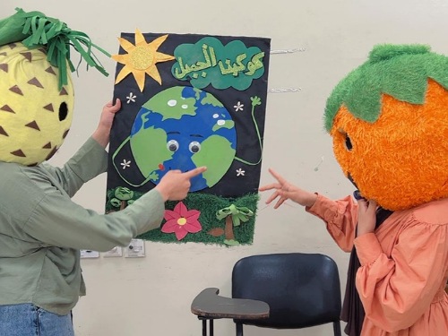 بدأت الورشة بزراعة بعض البذور كالقمح والذرة والفول مستخدمين كرتونه بيض كإعادة تدوير لخامات البيئة للإستفادة منها، وايضًا تنفيذ مسرح العرائس بإستخدام الماسكات وذلك لزيادة الوعي بأهمية الزراعة والنباتات.