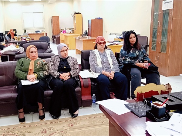 عقد صباح اليوم الاثنين الموافق 3/11/2025 اجتماع مجلس قسم العلوم النفسية لشهر نوفمبر برئاسة الاستاذ الدكتور / سهير عبد ميهوب رئيس القسم وبحضور جميع السادة الأفاضل أعضاء المجلس الموقر.