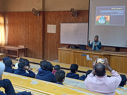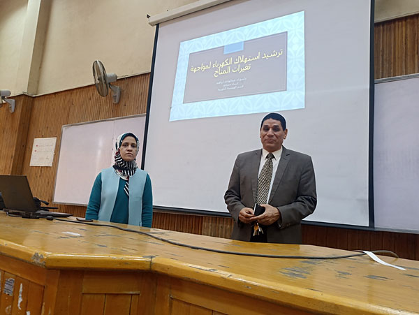 A seminar was held for school students on rationalizing electricity consumption, attended by Prof. Islam Hilali, Vice Dean for Community Service and Environmental Development, and Assistant ProfessorSuzan Abdel-Hadi about rationalizing energy consumption and climate changes, before they made a tour to some of the faculty’s laboratories to learn how to invest in clean and renewable energy sources.