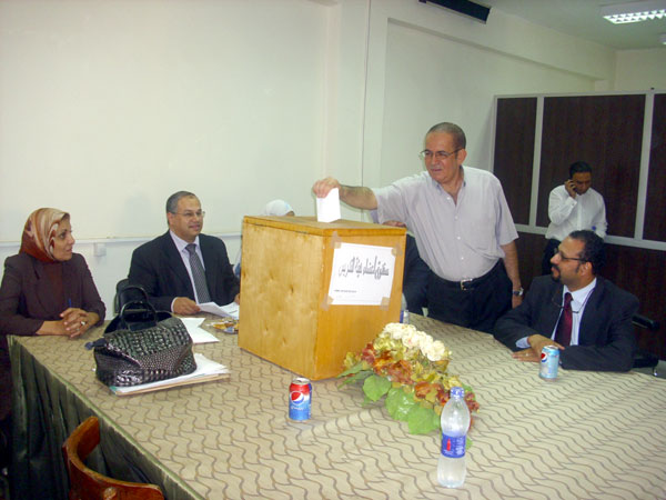 | Elections were conducted Tuesday to choose the heads of General Surgery Department and Internal Medicine Department. 3 candidates were competing for head of Internal Medicine Department, namely Professor Talal Ahmed Abdel Rahim, vice-dean for Education and Students’ Affairs, Professor Maher Abu Bakr Al-Amir, chair of Internal Medicine Department, and Professor Khaled Ahmed Al-Khashab, chair of Cardiology Department. On the other hand, only one candidate ran for chair of General Surgery Department, namely Professor Ashraf Hussein, professor of General Surgery. Prof. Khaled Al-Khashab won the poll with 20 votes, followed by Prof. Maher Al-Amir who got 15 votes. The third contender Prof. Talal Ahmed Abdel Rahim won no votes. In all, 35 people – 20 faculty staff members and 15 teaching assistants- voted in the poll. Therefore, Prof. Khaled Ahmed Al-Khashab has become Chair of Internal Medicine Department.With no challengers on the ballot, Professor Ashraf Hussein has won the position of Chair of General Surgery Department. It is worth mentioning that the Elections Supervisory Committee consisted of Professor Gamal Abdel-Rahman, Professor Sawsan Abdel Aziz Sadek, Professor Ahmed Abdel Mokatder, and Dr. Naglaa Al Sherbini. |