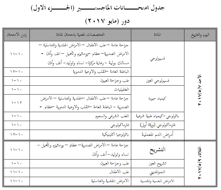 Schedules of exams for the second semester Masters Part I C
