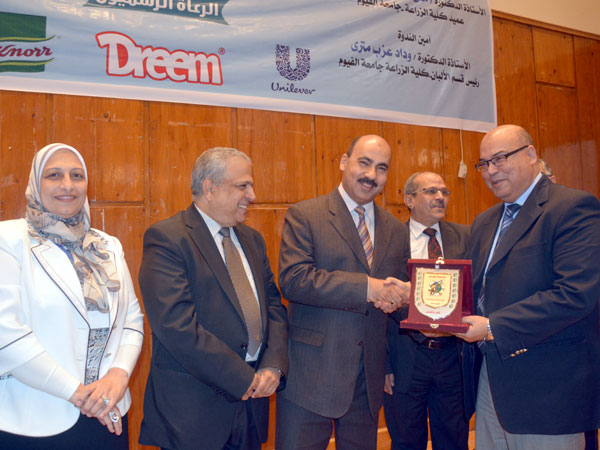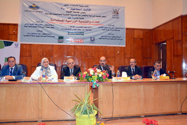 Prof. Khaled Ismail Hamza, Fayoum University President witnessed a scientific seminar entitled: "Food and Sustainable Agricultural Development" which is organized by Faculty of Agriculture in cooperation with Scientific Association for Food Industries on Thursday, 7/4/2016, in the hall of Prof. Saad Nassar. The seminar was attended by Prof. Mohamed Abd El-Wahab, Vice President for Education and Student Affairs, Prof. Ashraf Abd El-Hafeez, Vice President for Community Service and Environmental Development, Prof. Mona Abd El-Tawab Al Khashab, Dean of the Faculty, Prof. Ramadan Abd El-Aziz Madani, Vice Dean for Community Service and Environmental Development, Prof. Khaled Atallah, Vice Dean for Education and Student Affairs, Prof. Wedad Azab, Head of Dairy Department, Prof. Rajab Ismail Mourad, Professor at Faculty of Desert and Environmental Agriculture, University of Alexanderia. Prof. Mohamed Mahmoud Youssef, Professor of Food Science, Faculty of Agriculture, Alexandria University, and a number of members of the Scientific Association for Food Industries, Faculty members of Fayoum University and Alexandria University.
