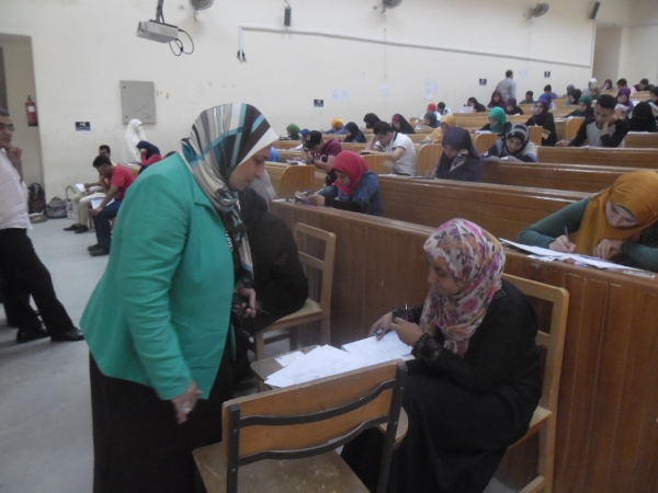 Pro.Dr.Mona Al Kashap checks the exams at the college of agriculture.