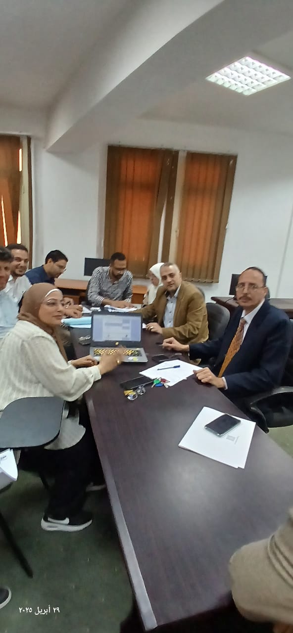 The meeting was attended by heads and members of all standard committees and focused on discussing the standards of financial resources, students and graduates, and faculty members, on Wednesday, April 29, 2025, at the Documentation Unit – Faculty of Archaeology.