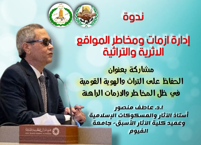 In light of the constructive and fruitful cooperation between the Arab Council of the General Union of Arab Archaeologists and the Union of Egyptian Archaeologists, Prof. Dr. Atef Mansour, Professor of Islamic Archaeology and Numismatics and former Dean of the Faculty of Archaeology – Fayoum University, delivered a lecture titled: