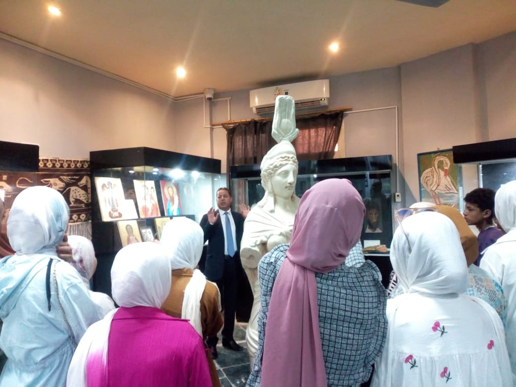 The students toured the museum, accompanied by Dr. Mahmoud Thabet, Teaching Assistant in the Department of Egyptian Antiquities, who introduced them to the museum’s diverse collection of artifacts from various historical periods. Dr. Mahmoud Gowhar also emphasized the museum’s role in spreading archaeological and cultural awareness among school and university students in Fayoum.