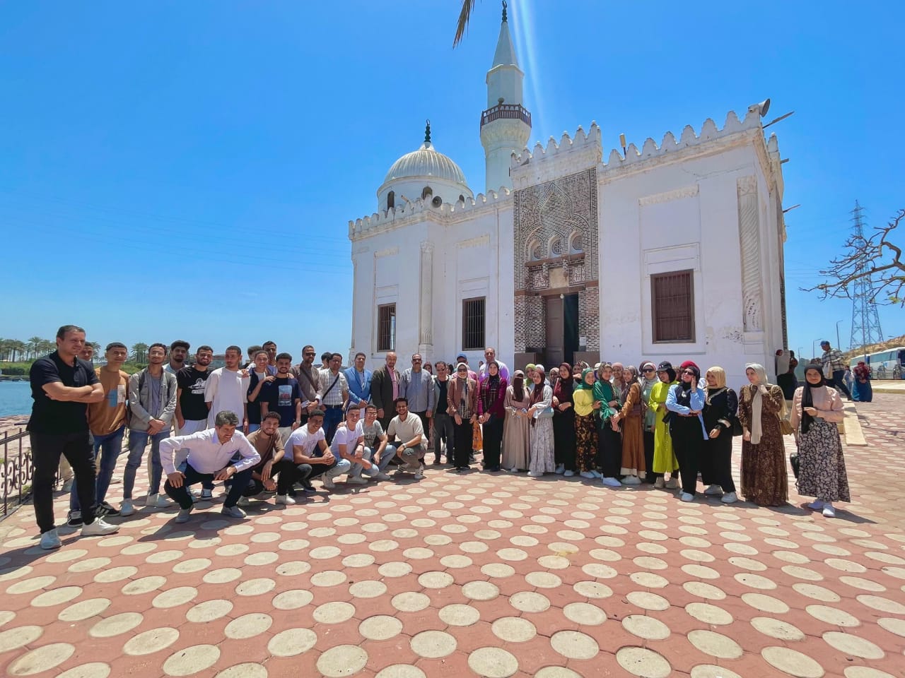 In a rich scientific field experience, students visited several notable archaeological sites in Rosetta, including: Abu Mandour Mosque, Qaitbay Fort in Rosetta, Al-Amsili House, Hasiba Ghazal House, Abu Shaheen Mill, the Local Mosque, and the ongoing restoration works at the National Museum of Rosetta.