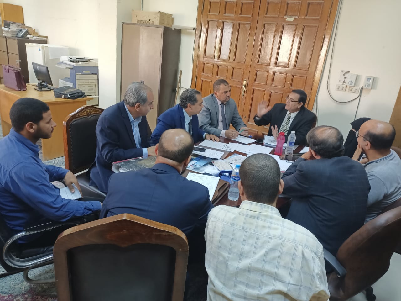 As part of quality assurance activities, the Internal Audit Committee convened today, Monday, October 24, 2022, chaired by Dr. Essam Amryyah, with committee members, along with the Community Participation Standard team chaired by Prof. Hassan Ramadi. The meeting was attended by Dr. Bayyomi Tahun, Director of the Quality Assurance Unit at the Faculty, and Mr. Ashraf Aql, Faculty General Manager. All practices were reviewed, all available supporting documents were examined, and emphasis was placed on addressing any unmet indicators, culminating in the drafting of a comprehensive report on the standard.