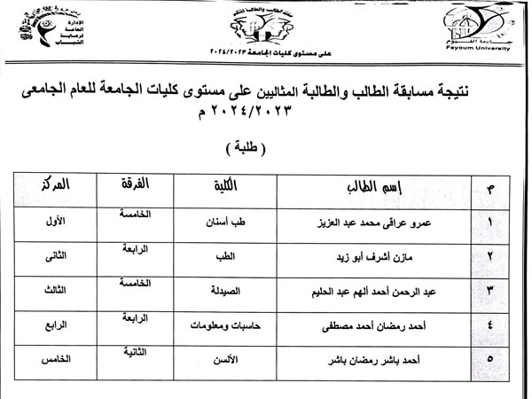 Prof. Mohamed Farouk El-Khabiry, Vice President of the University for Education and Student Affairs, extends his heartfelt congratulations to the university students who won the Ideal Student competition at the university level this year. He wishes them continued success and excellence.