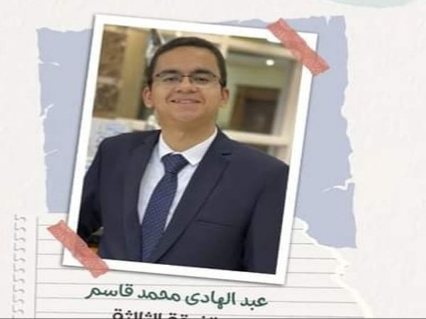 The college congratulates the student / Abd El-Hady Mohamed Kassem, for obtaining the title of ideal student at the university level