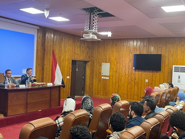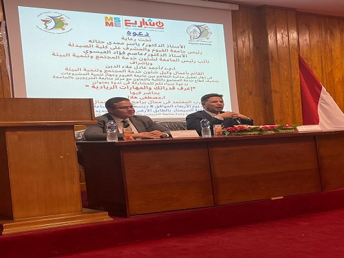 Mr. Mostafa Hilal addressed topics on entrepreneurship and innovation, such as the meaning of entrepreneurship, challenges facing startups, the importance of entrepreneurial behavior and personality development, small business concepts, and programs offered by the Small Projects Development Authority—within its cooperation agreement with Fayoum University.