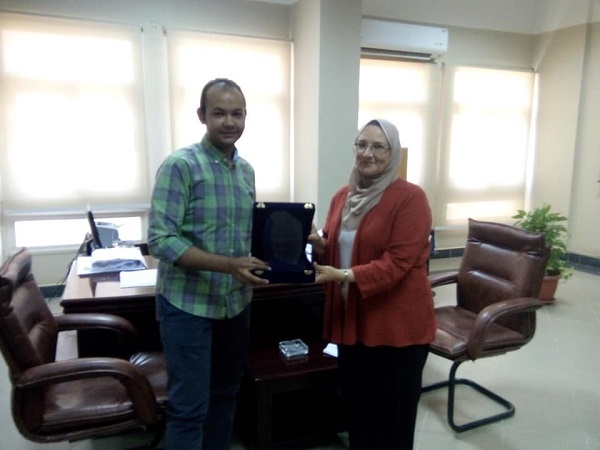 Professor Dr. Mona Hafez Hetah, Dean of the College of Pharmacy, and Prof. Dr. Abdel Salam Ibrahim, Vice Dean for Education and Students Affairs, honored the student Ahmed Tarek Al-Mestawi III for his acheivment at stuent session program.
