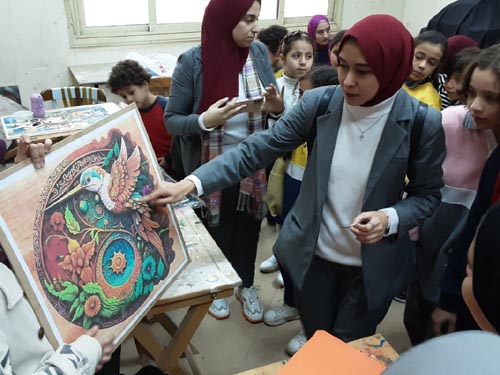 The Faculty of Specific Education received primary school students from Al-Resala School in Fayoum, on Monday, 18-12-2024. The students took a general tour of the Art Education Department’s laboratories and viewed the Faculty students’ handicrafts in order to increase their artistic experience.