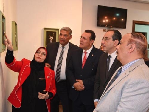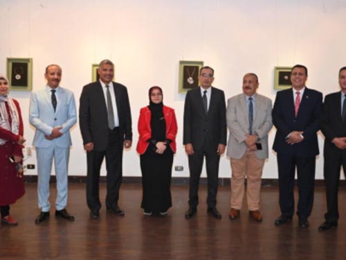 Prof. Yasser Magdi Hatata, President of Fayoum University, opened an art exhibition by Prof. Mona Mohamed El-Agry, Professor of Metalwork and Jewelery and Head of the Art Education Department (formerly), on Wednesday, 17-8-2022, at 10 am, in the Revolution Hall, at the Faculty of Specific Education, Fayoum University, in the presence of: