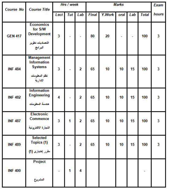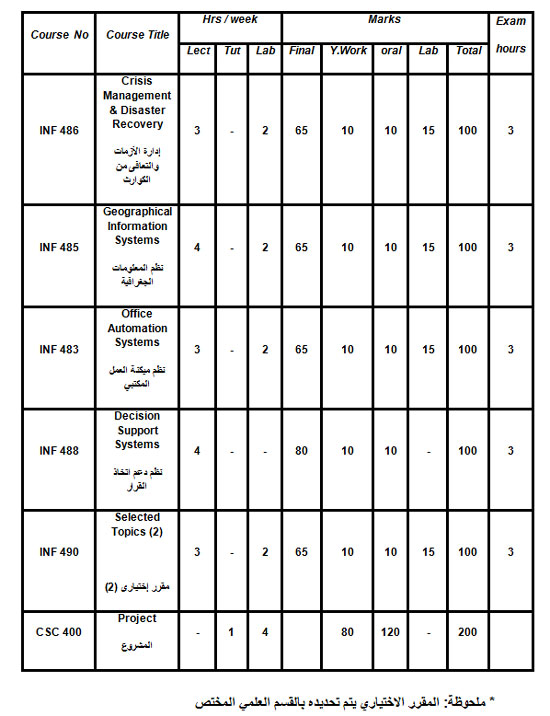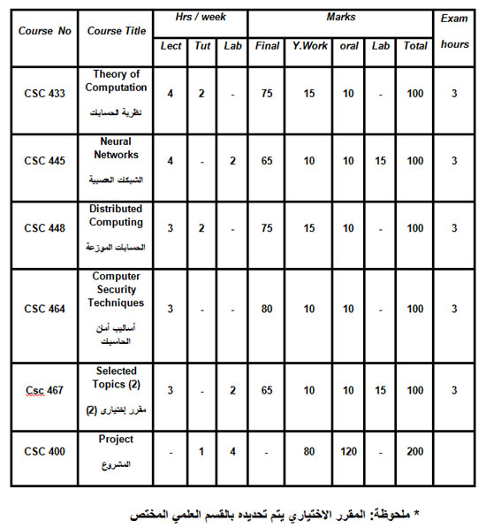 اللائحة الدراسية : السنة الرابعة