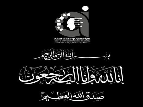 يتقدم السيد الاستاذ الدكتور محمد خفاجى ، عميد الكلية ، والسادة وكلاء الكلية ، وجميع اعضاء الكلية ، بخالص التعازى الى الدكتورة اسراء رسلان ، المدرس بقسم نظم المعلومات بالكلية.