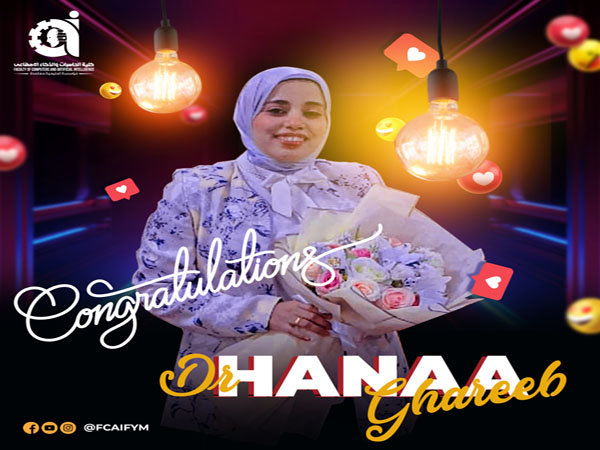 يتقدم السيد الاستاذ الدكتور شيرين طايع ، عميد الكلية ، والسادة اعضاء هيئة التدريس ، وجميع أسرة الكلية ، بخالص التهانى الى الدكتور هناء غريب ، بمناسبة حصولها على درجة الدكتوراه فى نظم المعلومات.