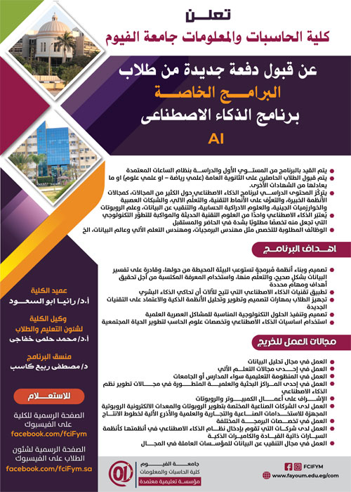 - استخدام اساسيات الذكاء الاصطناعي وتخصصات علوم الحاسب لتطوير الحياة المجتمعية.