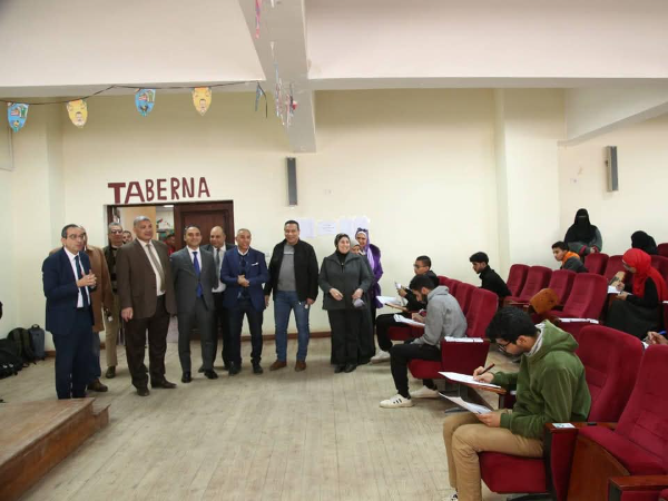 Prof. Dr Yasser Magdy Hatata, Président de l'Université du Fayoum, et Prof.Dr. Arafa Sabry Hassan, vice-président de l'Université des études supérieures et de la recherche, et le prof.Dr. Assem Fouad El-Issawy, vice-président de l'Université des affaires du service communautaire et du développement environnemental et superviseur du secteur de l'éducation et des affaires étudiantes, ont inspecté les examens du semestre d'automne pour l'année universitaire 2024/2025 au Collège d’Al-Alsun pour assurer leur bon déroulement du processus d'examen, le jeudi 1/2/2025.
