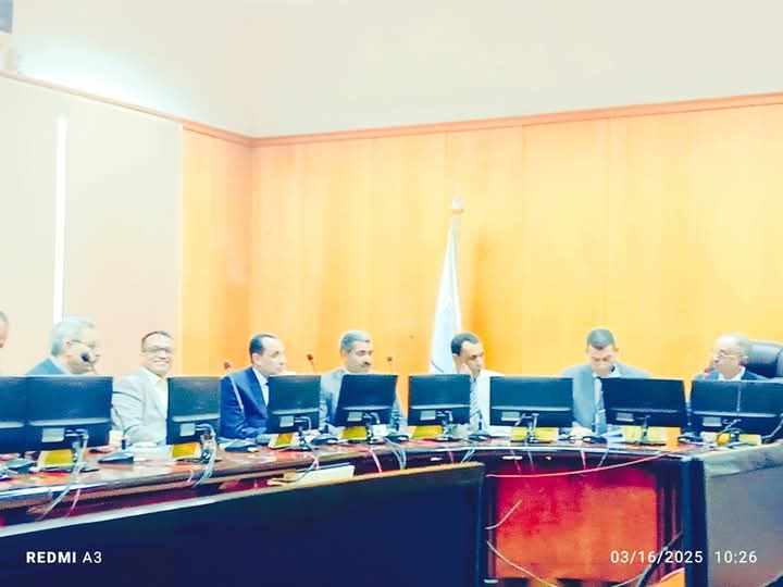 Une réunion a eu lieu aujourd'hui, le 16 mars 2025, dans la salle du Conseil du Collège à exactement dix heures du matin, dirigée par le prof. Dr. Tariq Muhammad Abdel Wahab, doyen du Collège, et à laquelle ont participé les vice-doyens, les chefs de département, les professeurs titulaires et les membres de l'éminent Conseil.