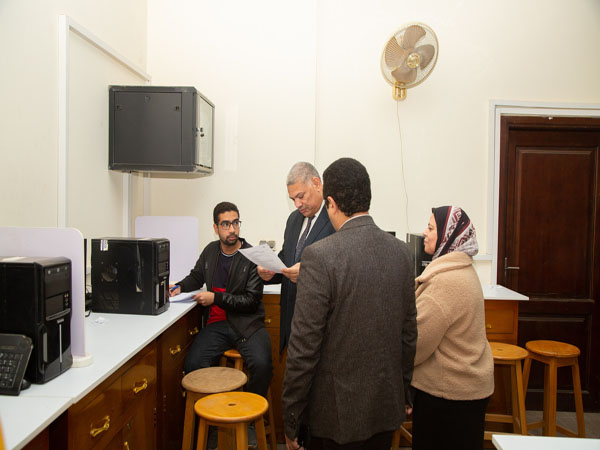 Aujourd'hui, le prof. Dr Arafa Sabry, vice-président de l'Université des études supérieures et de la recherche, a assisté aux examens de troisième cycle à la Faculté d'Informatique et d'Intelligence Artificielle de l'Université du Fayoum.