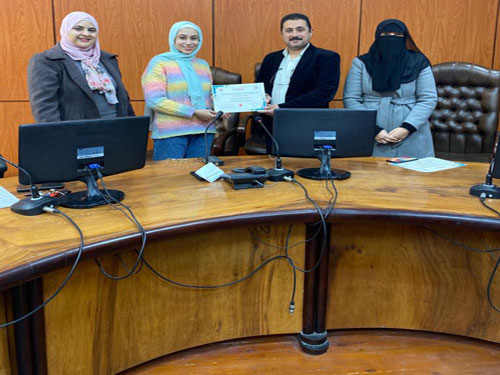 En présence du Prof. Dr. Mohamed Khafagy , doyen de la faculté, de la Prof. Dr. Fawzia Ramadan, enseignante de matière et de la Prof. Dr. Esraa Al-Hariri.