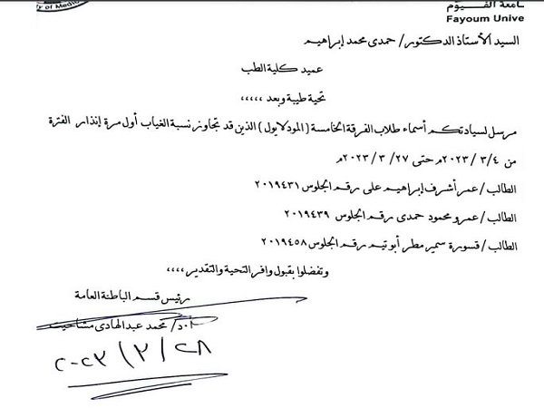 Avertissement de privation pour certains étudiants de cinquième année (Groupe de médecine interne générale).
